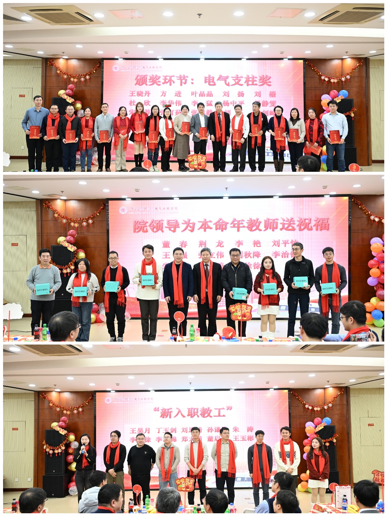 The 2025 Spring Festival Gala cum 2024 Summary and Commendation Event of the School of Electrical Engineering came to a successful conclusion with a warm and joyful group photo of all faculty and staff. Looking forward to 2025, the School of Electrical Engineering will continue to write a more brilliant chapter with a more pragmatic spirit, firmer steps, and more energetic state, contributing electrical engineering strength to the high-quality development of the university.