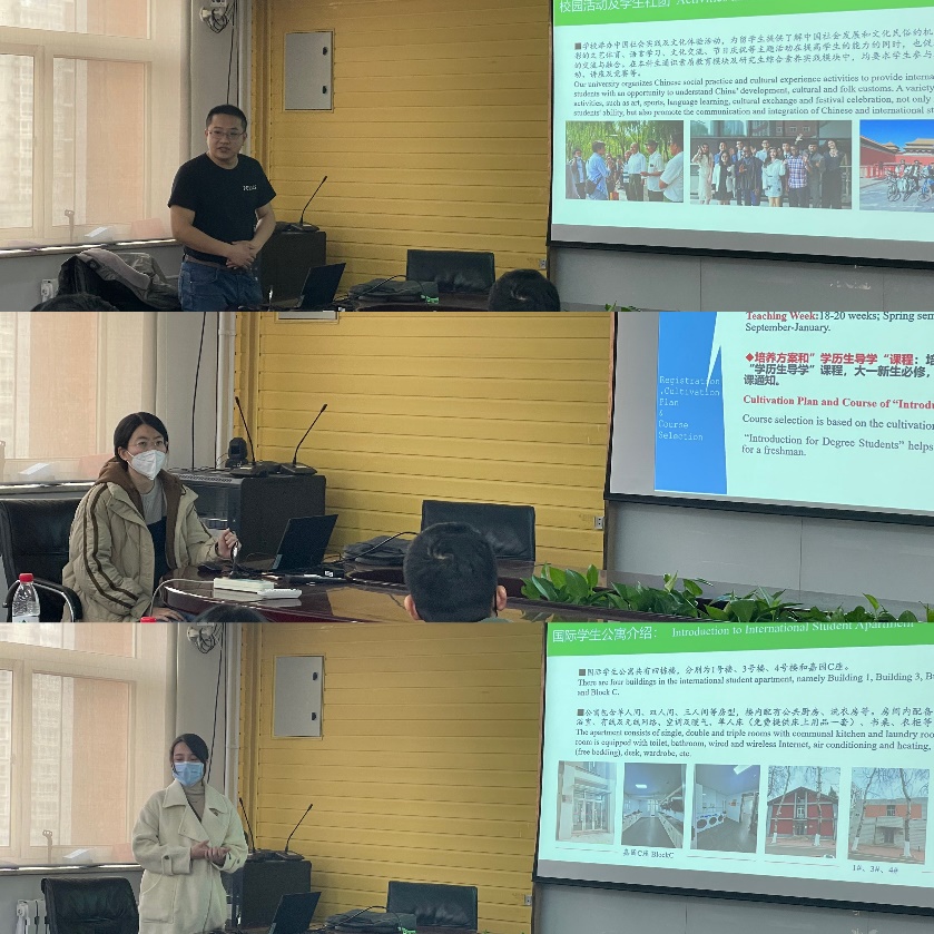 Teachers Bao Yihong, Gao Jie, and Jin Xue conducted orientation education for the international students from three aspects: daily management, academic management, and dormitory accommodation management.