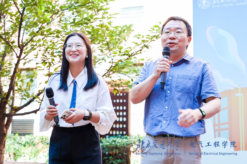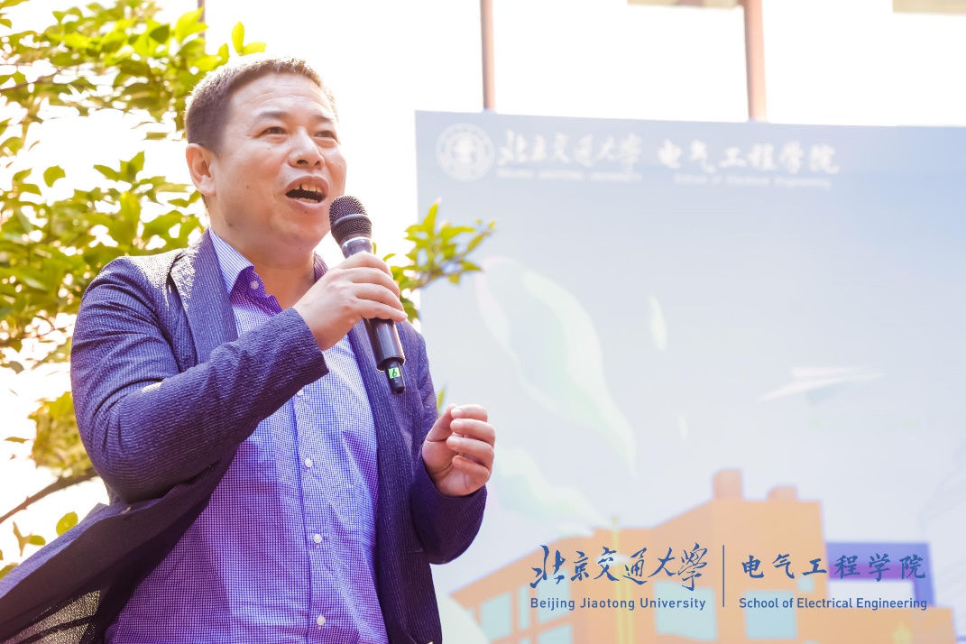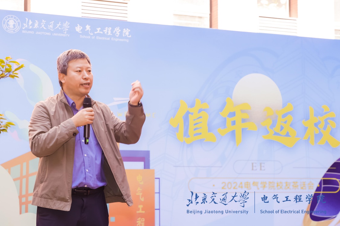 At 10:40 AM, the School of Electrical Engineering’s alumni tea party was held at the Rain Garden west of the Electrical Engineering Building. Returning alumni, school leaders, and representatives of teachers and students attended the event. The tea party was co-hosted by Liu Biao, a teacher representative of the school, and Zhang Chushun, an alumni representative of the 2014 cohort.