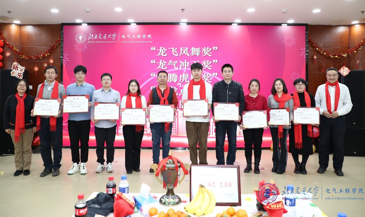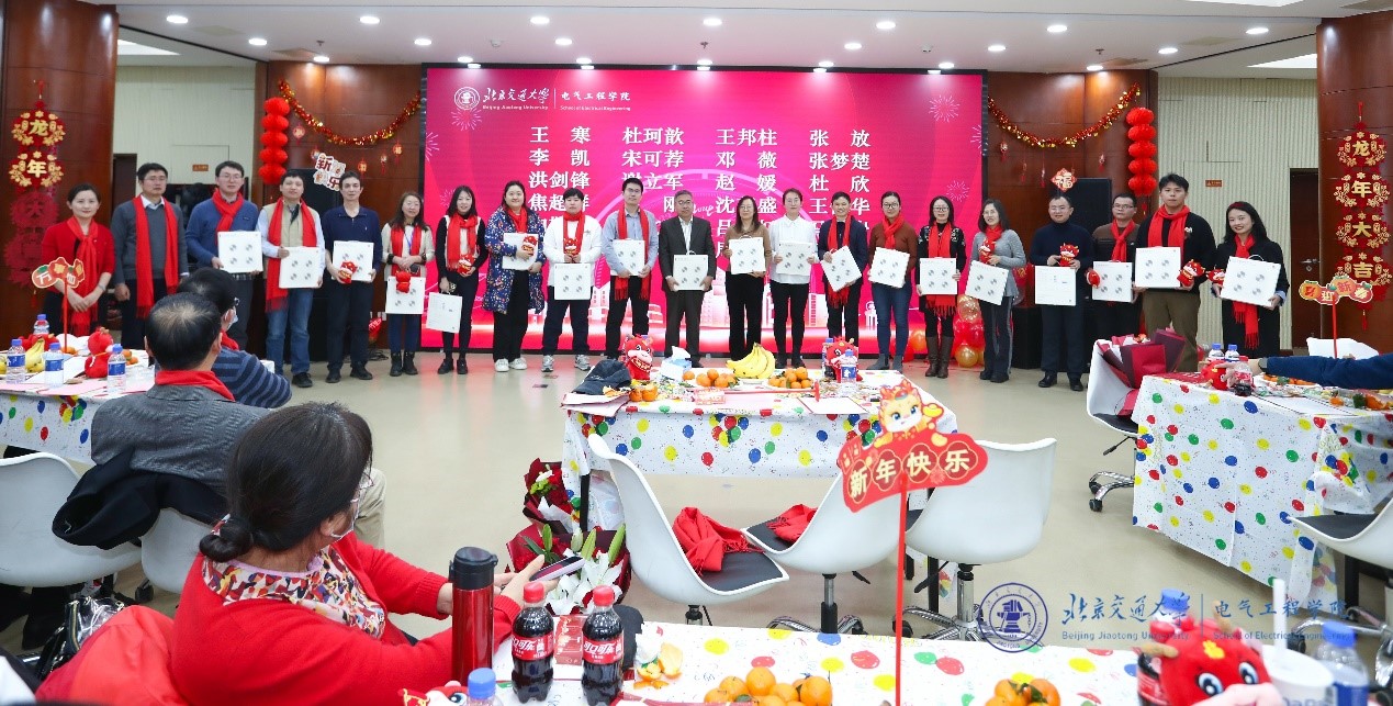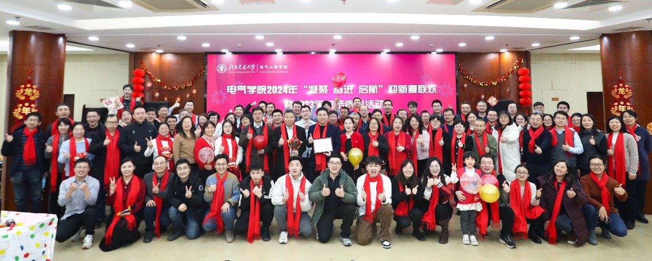 "Dragons Soar Vibrantly, Electrical Engineering Thrives." On the afternoon of January 17, the "Unite, Forge Ahead, Set Sail" — 2023 Annual Summary, Commendation and 2024 Spring Festival Gala of the School of Electrical Engineering was grandly held in the multi-functional hall on the first floor of the Mechanical Engineering Building. Alumni representatives, retired teacher representatives, and all faculty and staff of the school gathered to celebrate the New Year and discuss development. The event was also broadcast live with pictures online.