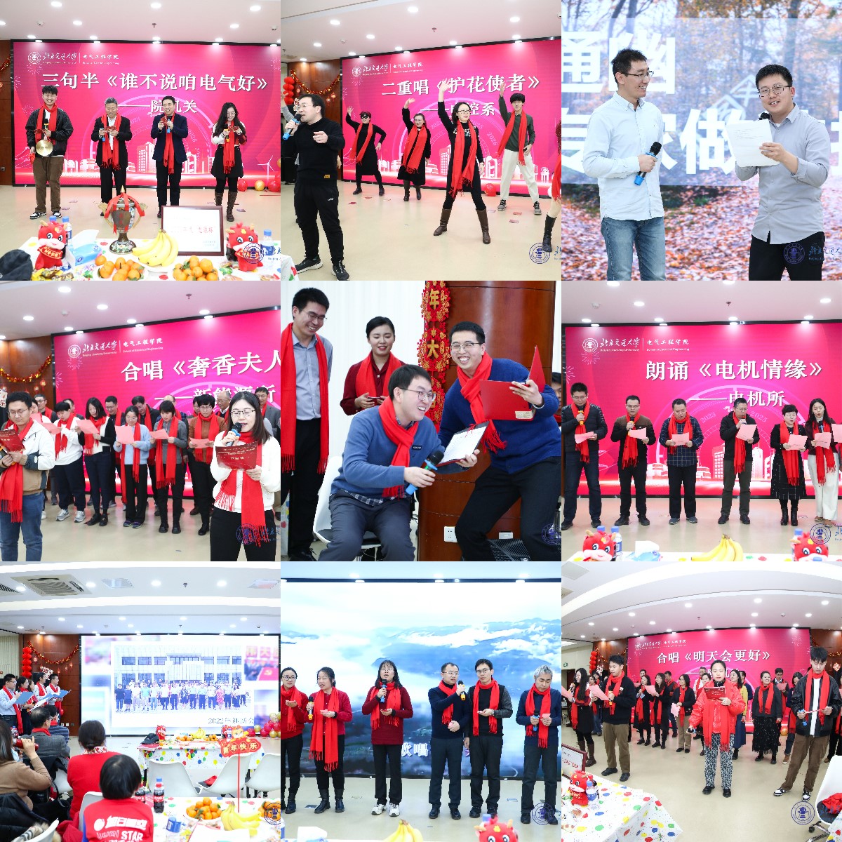 The gala featured wonderful performances by various departments and centers, winning waves of applause and cheers. Choirs from the Department of Power Engineering, Department of Traction Power, Department of New Energy, Department of Electrical Control, and the school administration sang "My Motherland and Me", "A Loving Family", "Madam Shexiang", "My Motherland", and "Tomorrow Will Be Better". Their beautiful songs expressed love for the motherland, praise for the times, wishes for the new year, and longing for a better life in the future, demonstrating the determination of all secondary units of the school to forge ahead together and their positive and uplifting spirit. The recitation "I Love Going to Work" by the Department of Power Electronics, "The Bond with Electrical Machines" by the Department of Electrical Machines, and the sketch "Revising Manuscripts" by the Electrical Engineering Base and Experimental Center showed the perseverance, diligence and professionalism of electrical engineering professionals. The song and dance "Flower Guardian" by the Department of Electrical Control and the clapper talk "Who Doesn’t Praise Our Electrical Engineering" by the school administration were full of creativity and passion, pushing the on-site atmosphere to a climax.