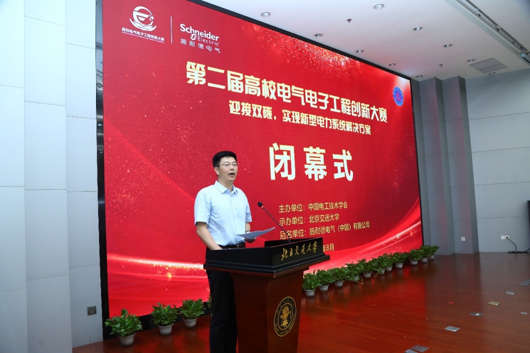 The closing ceremony of the competition was held in the meeting room of the Mechanical Engineering Building. Yang Qingxin, Chairman of the China Electrotechnical Society; Yan Xuedong, Vice President of our university; Wang Zhihua, Deputy Secretary-General of the China Electrotechnical Society; Han Yi, Vice Chairman of the Competition Steering Committee; and Zhang Lei, Vice President of Schneider Electric Co., Ltd. participated in the event. Vice President Yan Xuedong delivered a closing speech on behalf of the university and extended warm congratulations to the winning teachers and students.